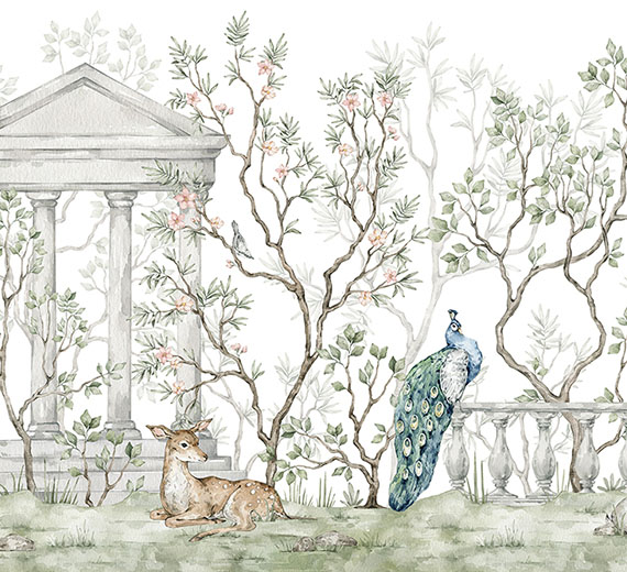 Chinoiserie (pronounced sheen-wah-zuh-ree) is a European decorative style that emerged in the 17th and 18th centuries, drawing inspiration from Chinese and East Asian art and design. It features ornate, nature-inspired scenes such as blossoming branches, exotic birds, butterflies, garden pavilions, and flowing landscapes. Chinoiserie is often associated with aristocratic interiors, vintage charm, and timeless luxury.